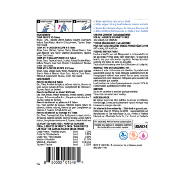 - MADE WITH WHOLESOME INGREDIENTS YOU CAN TRUST: Every Inaba product is made with yummy high-quality ingredients, including farm-raised chicken and/or natural wild-caught tuna