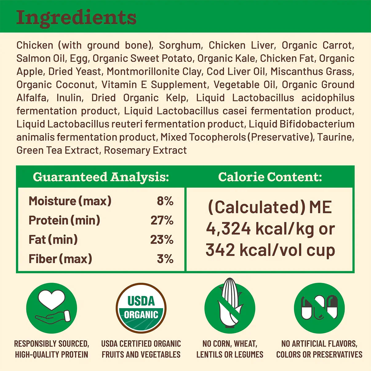 - Whole food nutrition with no synthetic vitamins & minerals